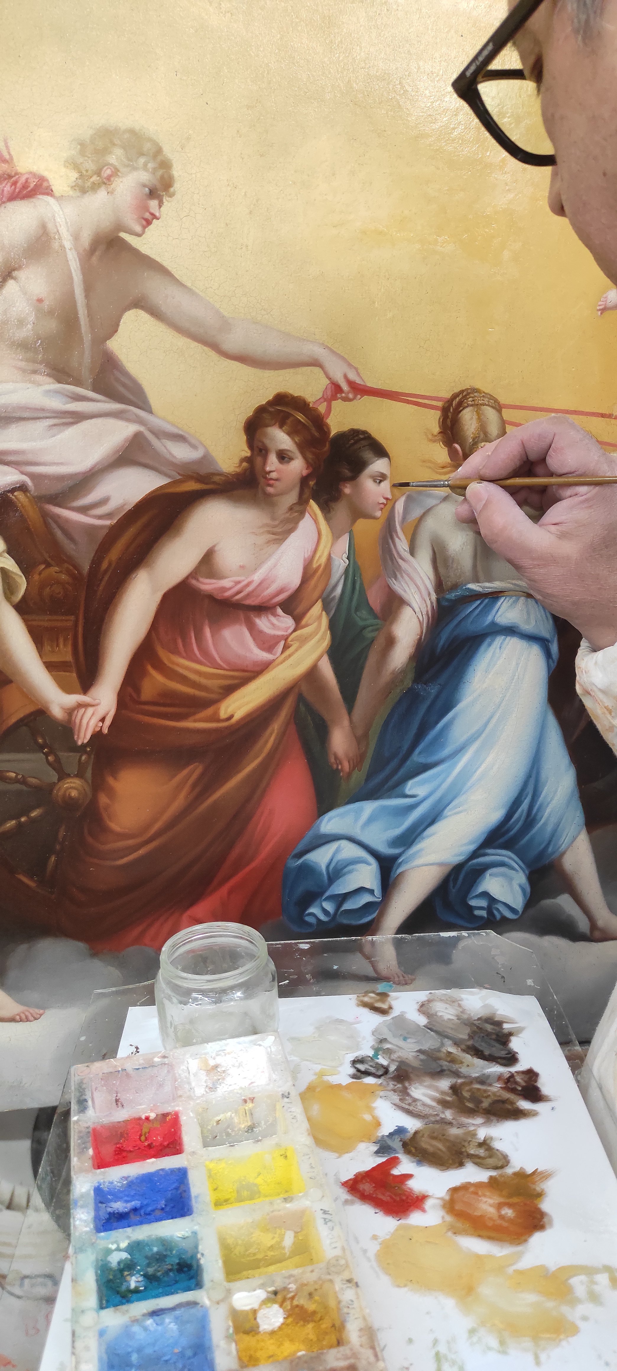 Il prof. Andrea Ippoliti dedica molta attenzione allo studio ed utilizzo delle antiche tecniche pittoriche, mettendo concretamente in atto quanto raccomandato nel “Libro dell’Arte” di Cennino Cennini, scritto nel 1300.