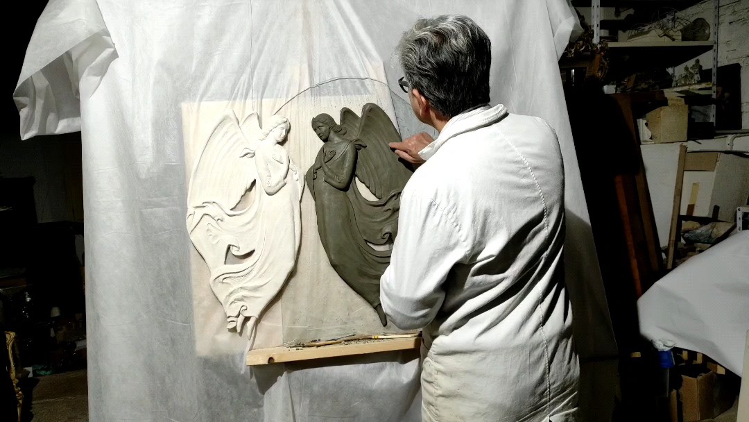 Dopo la maturità entra nello studio del professor maestro Schiavoni, di cui diventa aiuto e allievo. Lo affiancherà nell’ esecuzione delle sue opere fino alla sua morte.